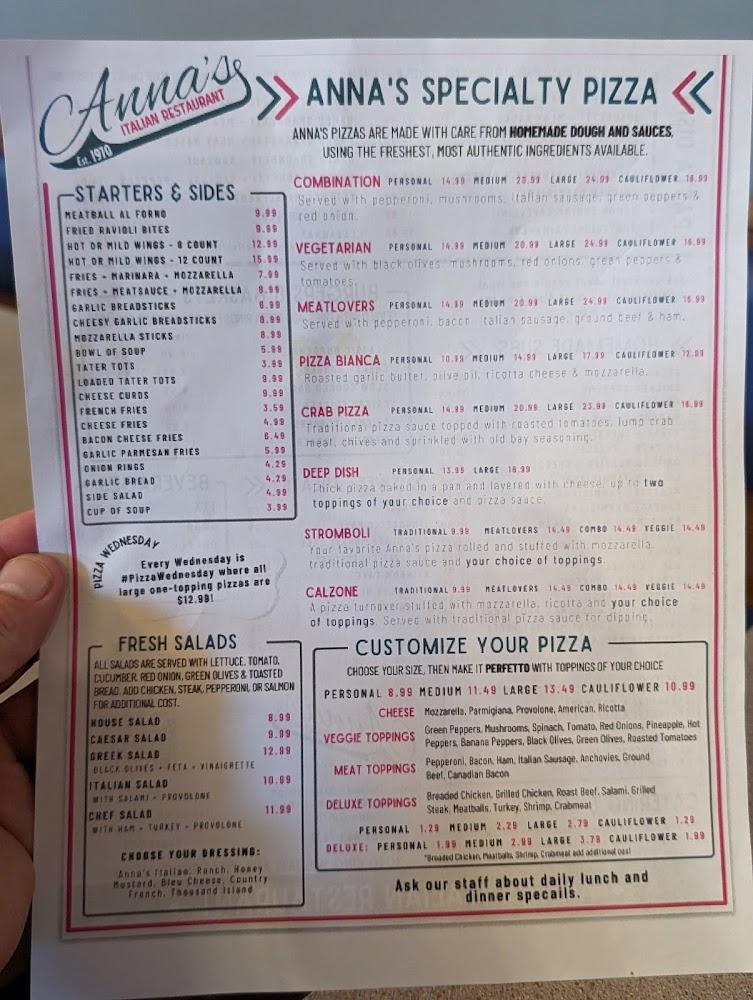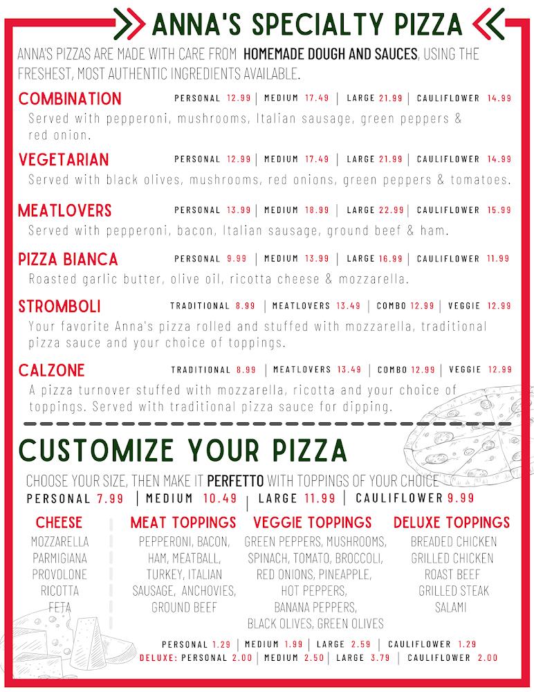 The menu at Anna's Italian Restaurant showcases a selection of traditional Italian dishes that cater to all appetites. Guests can explore pizzas ranging from classic Margherita to more adventurous combos. Pasta dishes offer creamy Alfredo and savory marinara options. The sub sandwiches make for a hearty meal perfect for lunch. Salads provide fresh, crisp choices for lighter fare. Desserts like cannoli add a sweet finish. Each dish reflects a commitment to using quality ingredients and traditional culinary methods, ensuring a memorable dining experience.